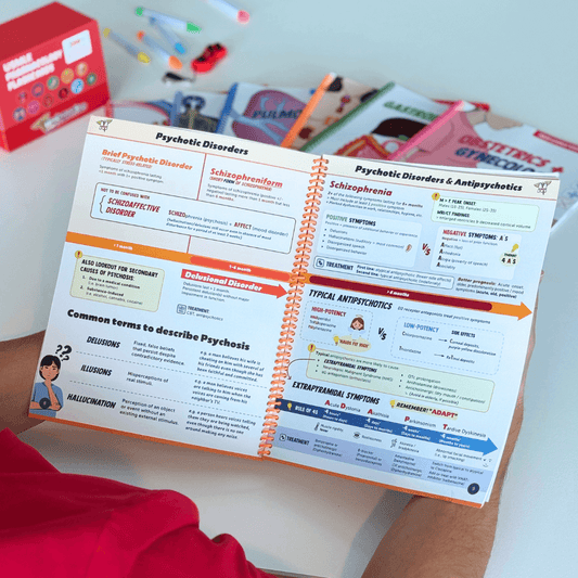 When I created my resources, it was because I knew firsthand how traditional study methods often fail to prepare medical students effectively. I designed these guides to be different—focused on high-yield content, packed with creative mnemonics, and paired with custom illustrations to make even the most complex topics easier to understand and remember. I wanted resources that integrated everything you needed to know together, like pharmacology, physiology, and pathology on the same page. My goal is to help students study smarter, not harder, and give them the tools they need to excel in exams and in their future medical careers.