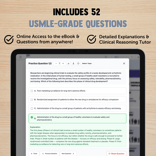 "The online eBook versions of the guides are exactly what I needed for Step 1 prep! The Step 1 style questions on every page have detailed explanations after you answer them, which really helps strengthen your understanding. It even has the ability to walk you through the clinical features of the question after! Having everything in one place saved me so much time and stress. Highly recommend for anyone prepping for Step 1!"