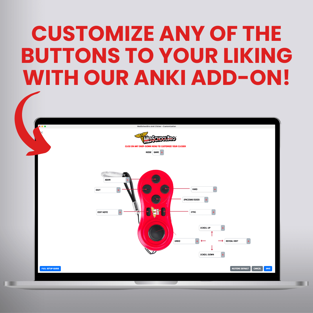 The buttons already come pre-programmed with the most popular configuration. To customize your buttons download our Anki Add-On.