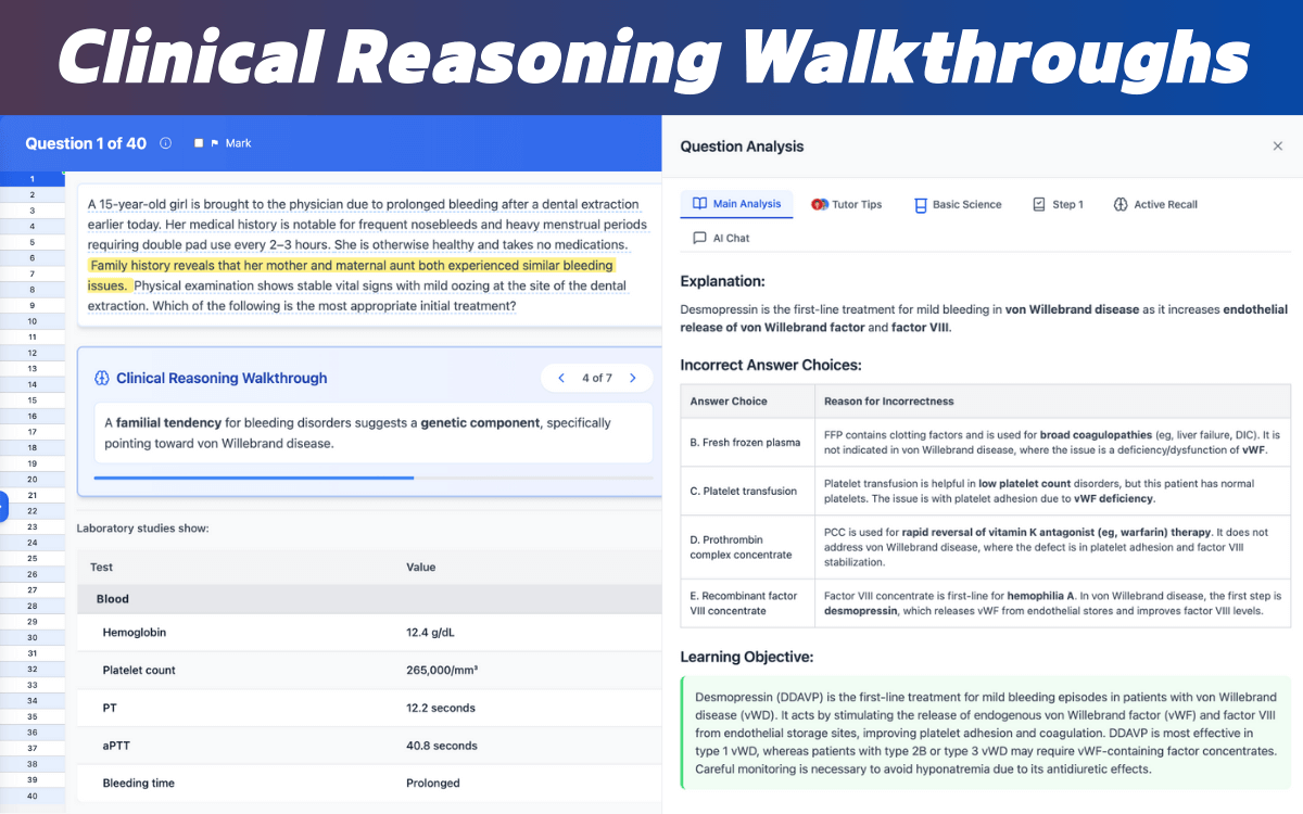 - Clinical Walkthroughs — step-by-step reasoning that mirrors real exam logic